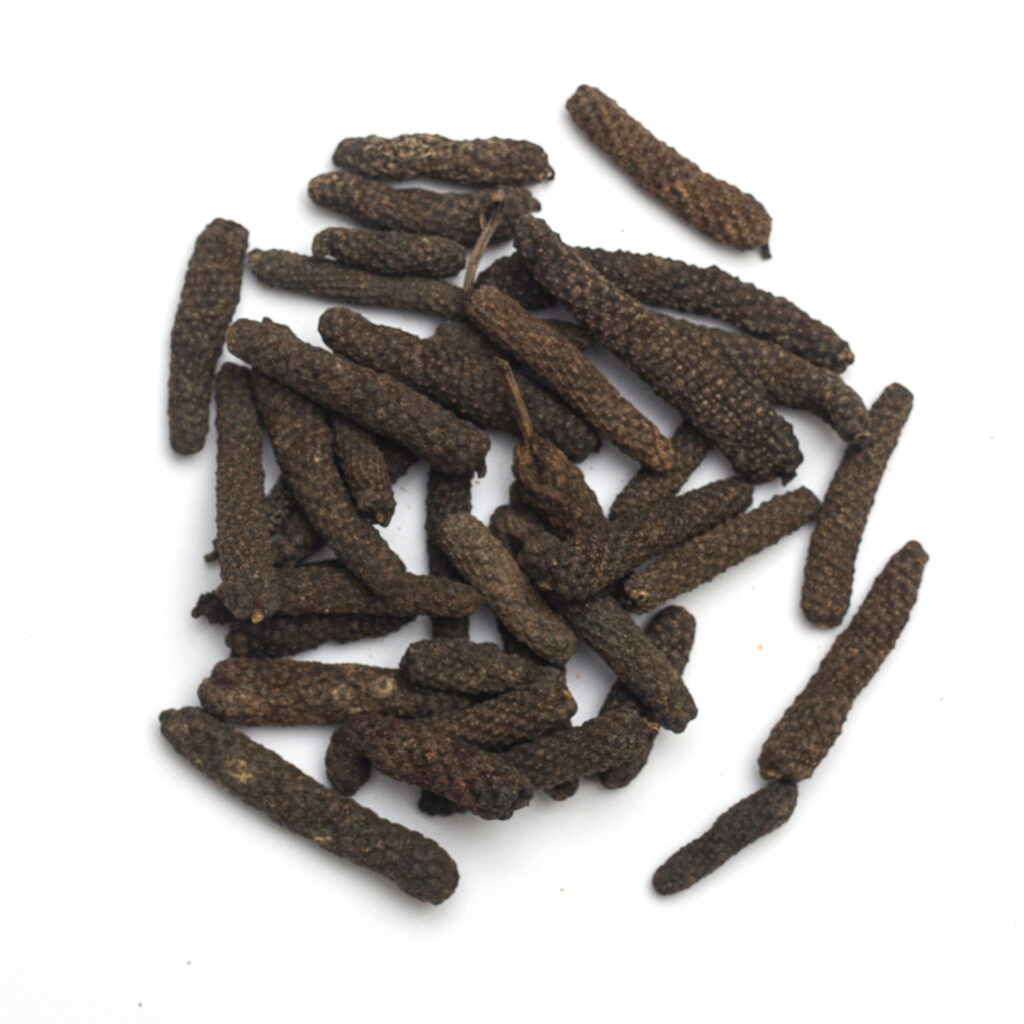 Les premières fleurs du poivre noir apparaissent en général à l’issue de la 3e année. La récolte de ces premiers épis reste symbolique : 200 à 500 g de poivre noir séché par plant selon la vigueur de la liane. La 4e et la 5e année apportent une montée en charge progressive. Ne récoltez pas tous les épis la 3e année : laissez 30 à 40 % des épis arriver à maturité complète pour alimenter la liane en nutriments via les graines mûres tombées au sol.